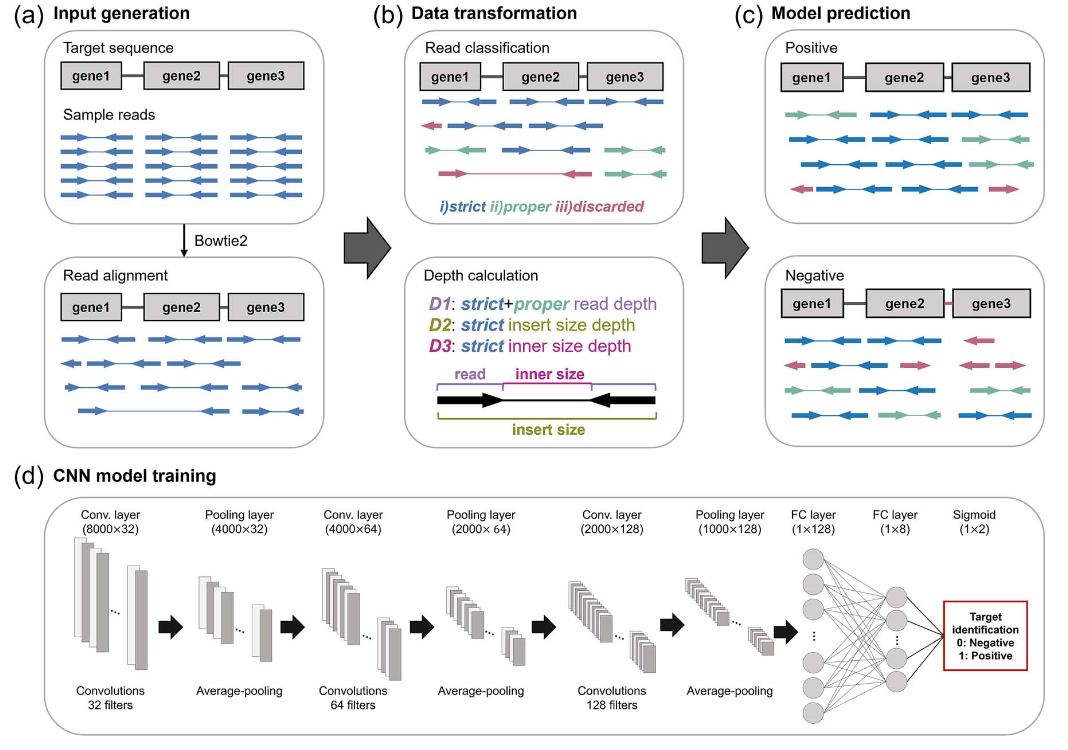 이 논문은 마이크로바이옴 내 MGEs를 정확하게 탐지할 수 있도록, read 정렬 정보를 이미지 형태로 변환한 후 CNN을 통해 예측하는 DeepMobilome 모델을 제안합니다. 기존 방식과 달리 단순히 서열 유사성을 비교하지 않고, read들의 정렬 유형(strict/proper/discarded), depth, insert size, inner size 등을 3채널 입력으로 구성해 위치 기반의 구조적 패턴을 학습합니다.